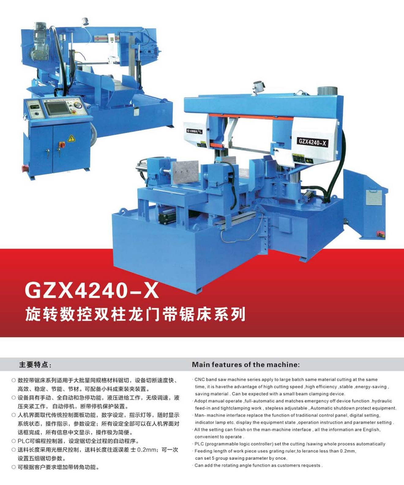 旋轉(zhuǎn)數(shù)控雙柱龍門式帶鋸床(GZX4240-X)